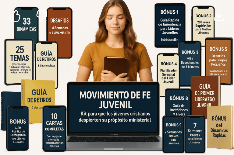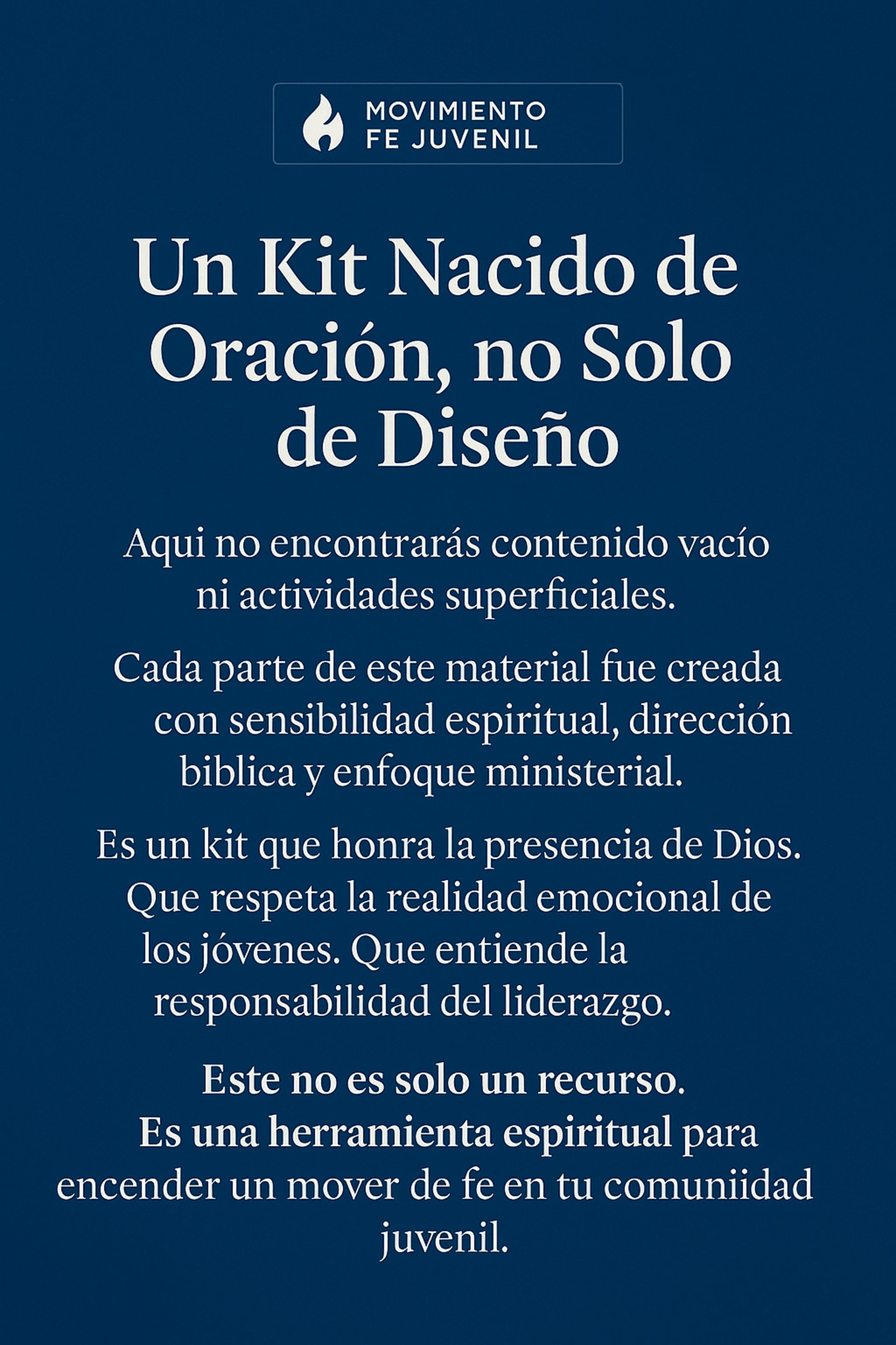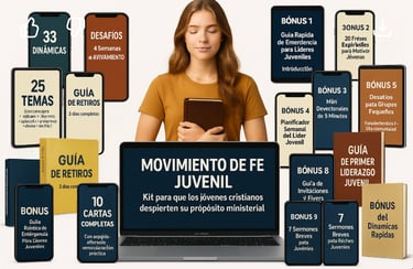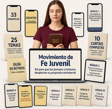 Al adquirir este kit ahora, no solo obtienes el contenido principal, sino que también recibes bónus exclusivos que elevarán tus reuniones juveniles y fortalecerán tu ministerio con recursos únicos, prácticos y llenos de propósito espiritual.